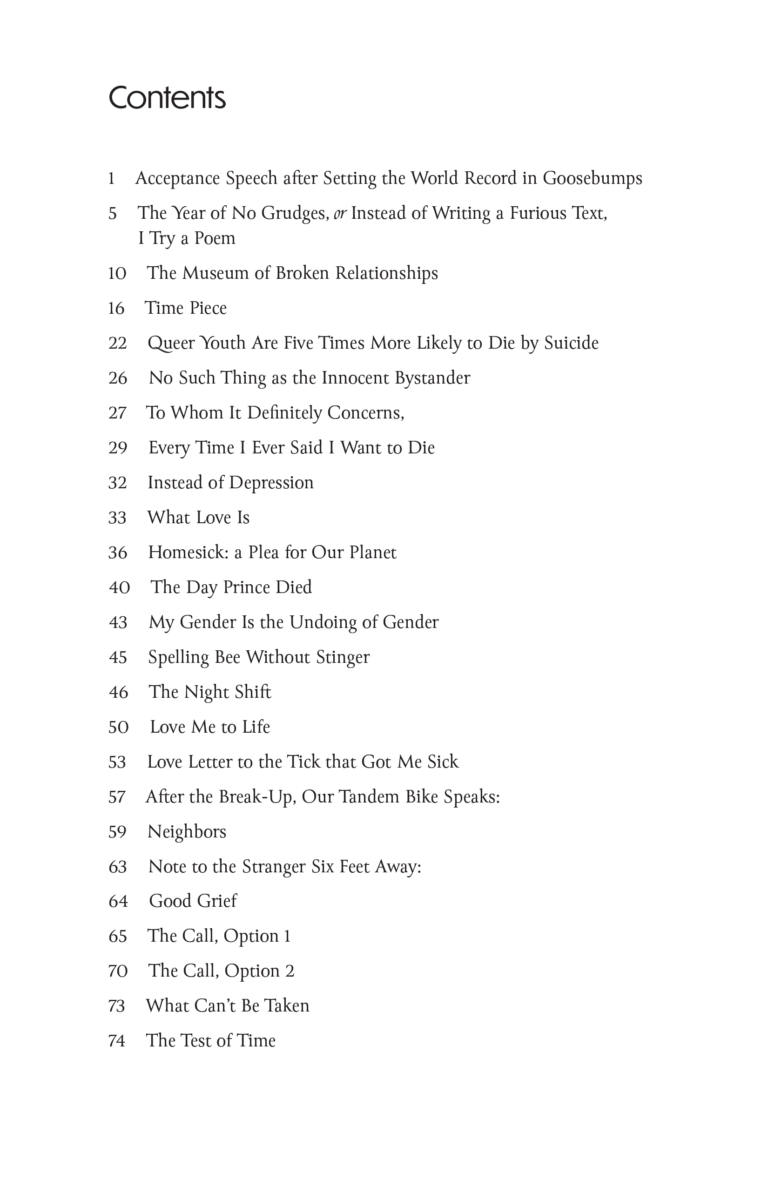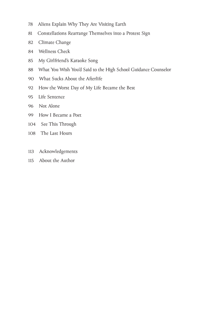 The poems range from close examination of the deeply personal to the vastness of the world, exploring the expansiveness of the human experience from love to illness, from space to climate change, and so much more in between.